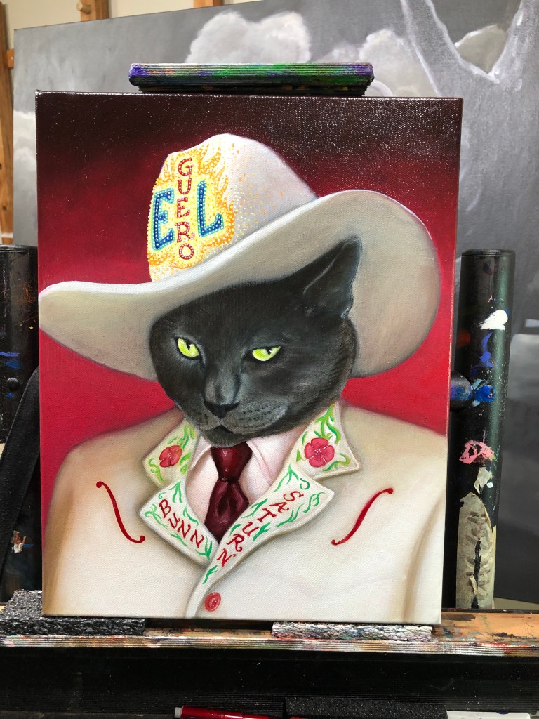 El Guero (in progress) Posted byRicardo Ruiz the ElderMarch 18, 2022Posted inUncategorized Finally getting to work i began in December, 2021. This cat portrait is a commission and a lot of fun to paint… Share this: Share on X (Opens in new window) X Share on Facebook (Opens in new window) Facebook Like Loading...